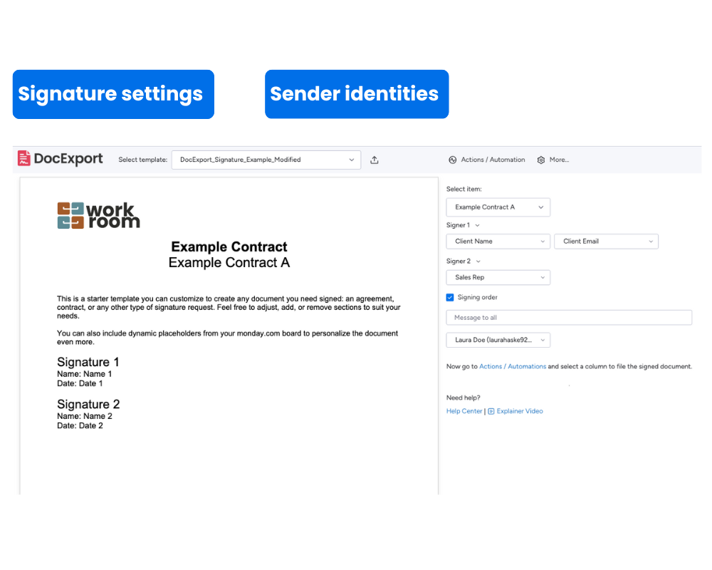 Manual signatures slow you down. Paperwork piles up. Unlike standalone eSignature tools, DocExport makes signatures a native part of your monday.com workflow.